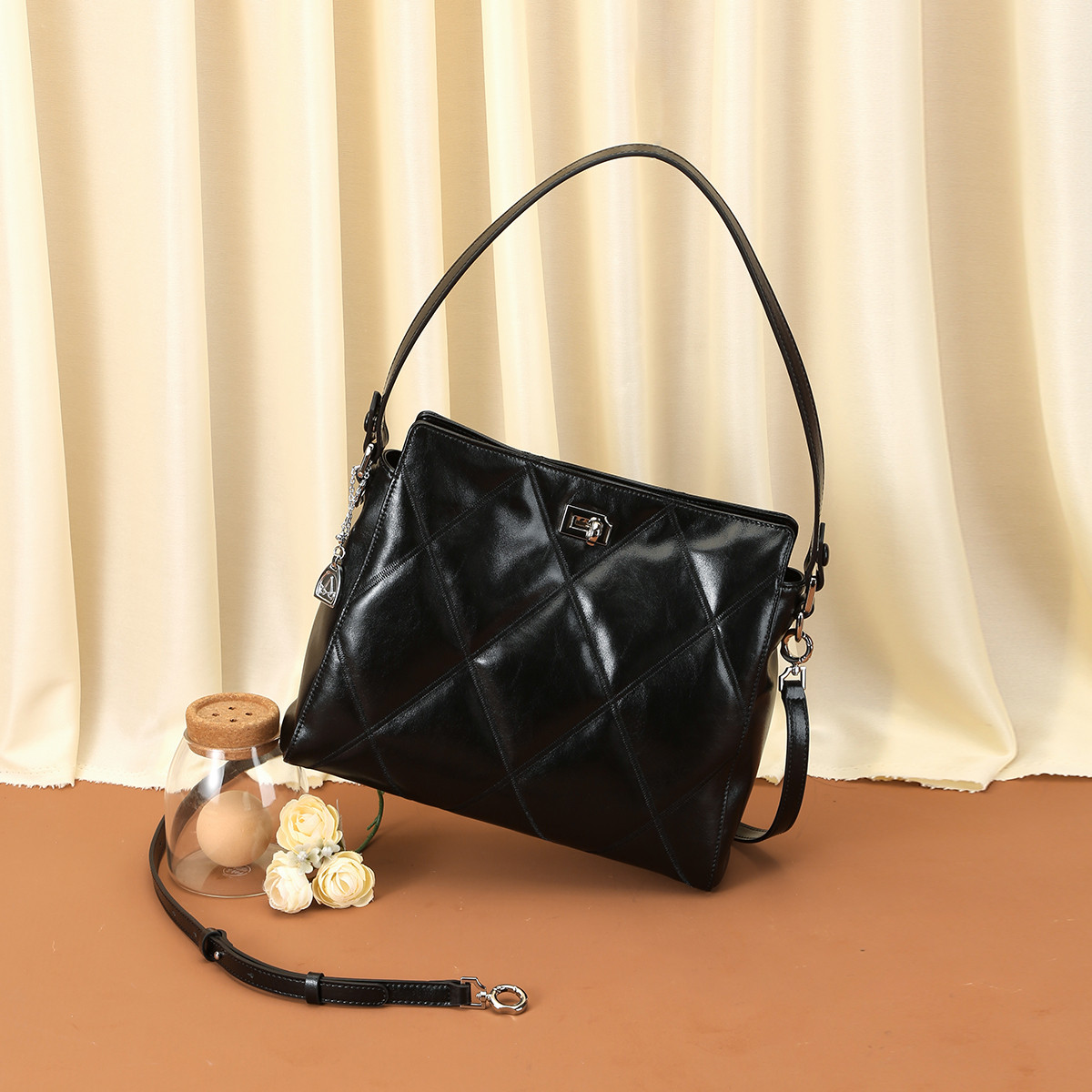 【經典暢銷】百搭質感手提包大容量水桶包通勤上班女包包菱格包