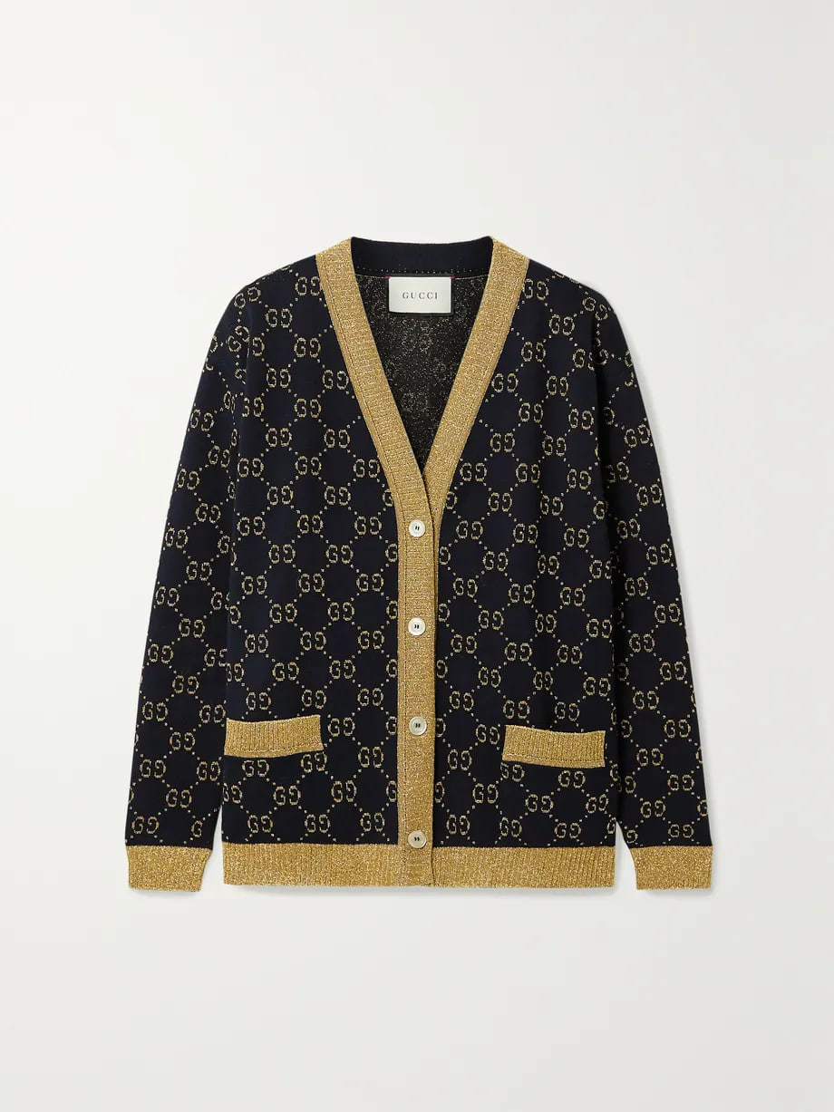 GUCCI Metallic jacquard-knit cotton-blend cardigan